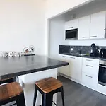 There is a microwave, an electric kettle, and a refrigerator in a kitchen. The closest bus stop is La fourche, which is about 5 minutes' walk away.